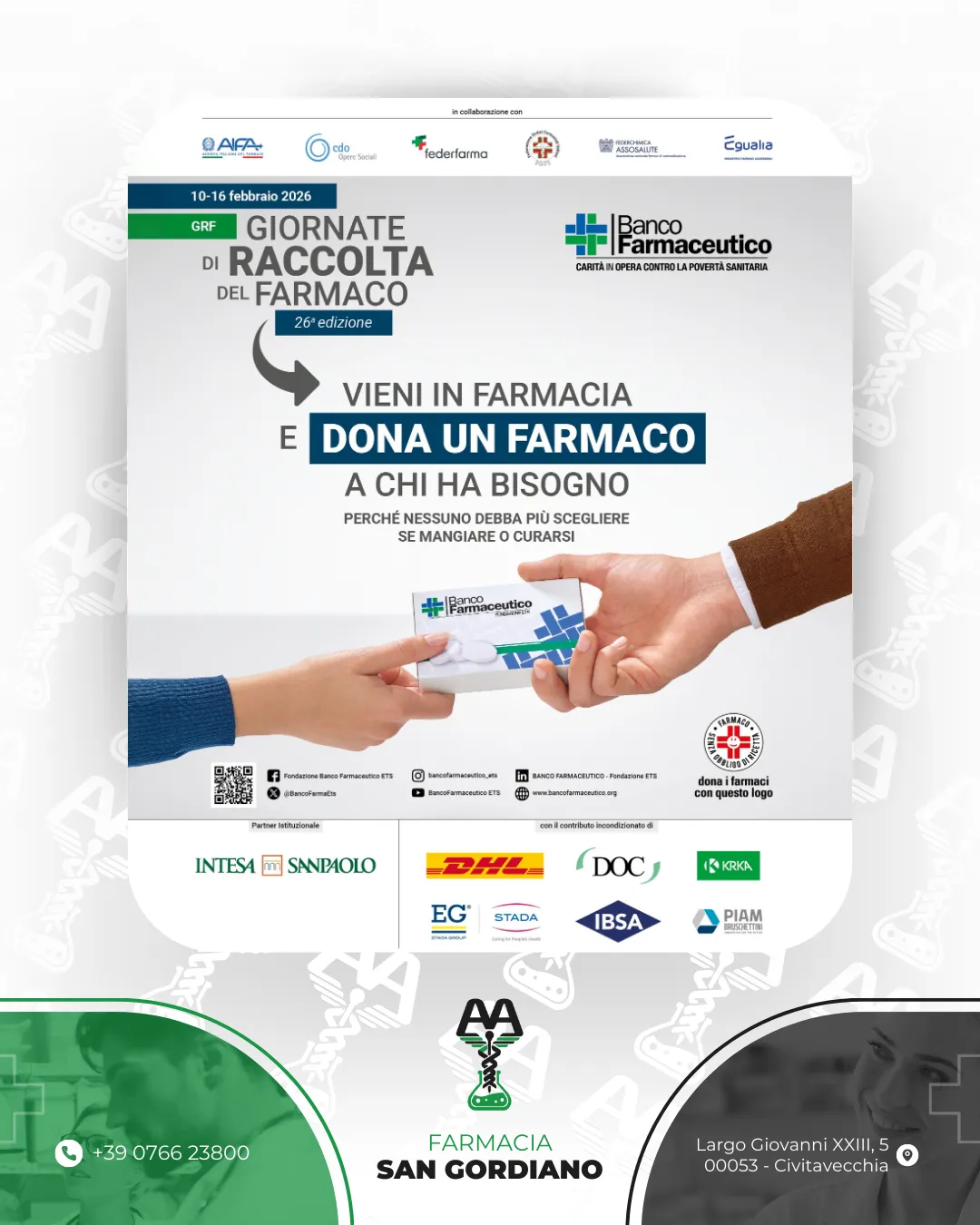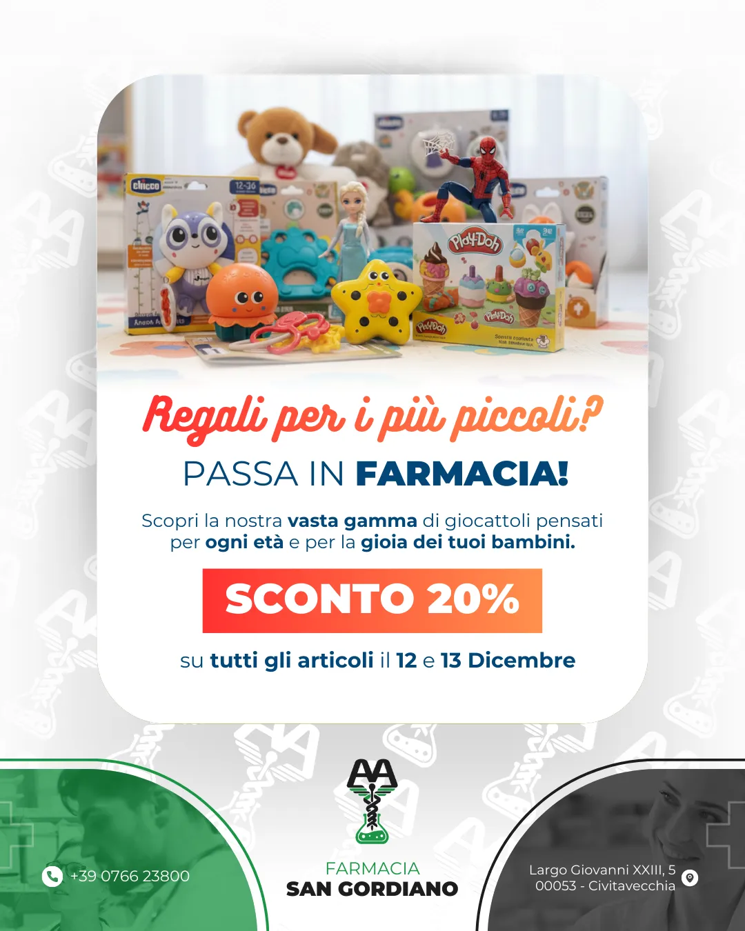 Da oltre 25 anni, la Farmacia San Gordiano Amalfitano è un punto di riferimento per la salute e il benessere dei cittadini di Civitavecchia. Fondata con l'obiettivo di fornire un servizio di qualità e attenzione al cliente, la farmacia ha sempre messo al centro le esigenze delle persone, garantendo professionalità e competenza in ogni ambito della cura della salute.
